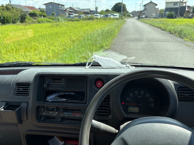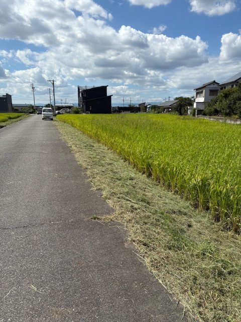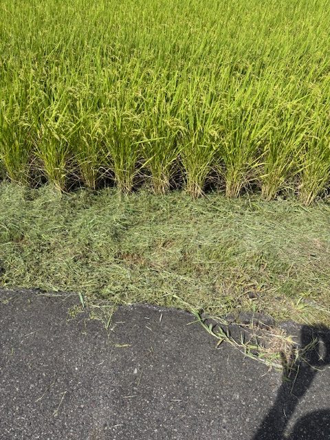 子供の送迎の間に時間を見つけて水田の草刈りへ