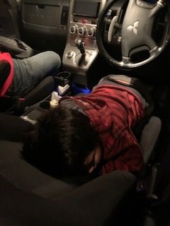 いざ、寝ようと思うと狭い・・・(荷物一杯の1BOXで4人はキツい・・)