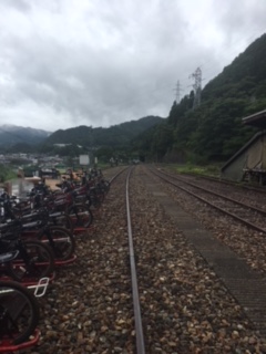 廃線になった旧神岡鉄道の線路の上を自転車?で走ります。