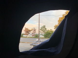 ルーフテントの隙間から朝日が差し込むのが好きですね。